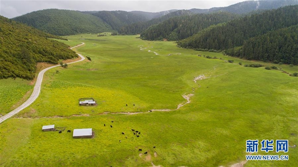 普達(dá)措國(guó)家公園彌里塘片區(qū)風(fēng)景(7月18日無人機(jī)拍攝)。 新華社記者 胡超 攝
