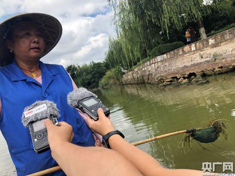 李云麗說,每天都要打撈三四船垃圾。水草多,青苔多。如果水草死了,就對水有污染。