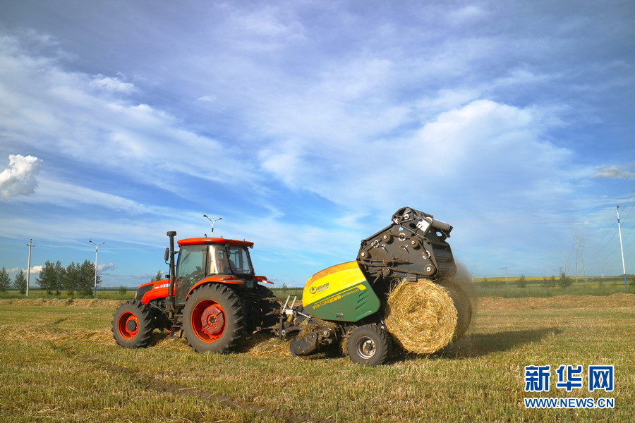 內蒙古呼倫貝爾農(nóng)墾集團施業(yè)區(qū)面積約3萬平方公里,有耕地600萬畝,草場1000萬畝。集團下轄海拉爾、大興安嶺兩大農(nóng)墾集團和7個專業(yè)公司,有24個現(xiàn)代化農(nóng)牧場。自1954年開發(fā)建設以來,墾區(qū)實行半軍事化管理,80%以上耕地集中統(tǒng)一耕種,采用先進的大型農(nóng)機設備,田間綜合機械化水平達99%,農(nóng)業(yè)科技貢獻率達到72%。圖為7月21日,一輛捆草機正在內蒙古呼倫貝爾市謝爾塔拉農(nóng)場進行捆草作業(yè)。(新華網(wǎng) 汪亞/攝)