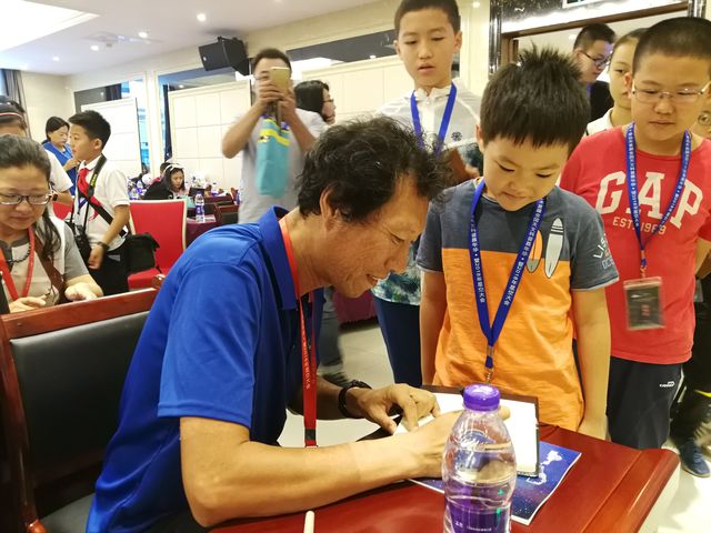 北京天文館館長朱進為小天文愛好者簽名留念(喻菲攝)