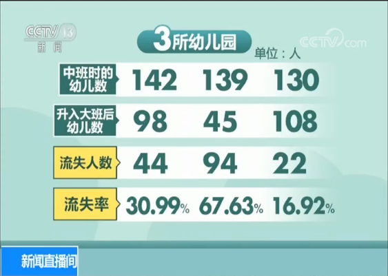 據(jù)北京一位在幼兒園工作多年的教師,對周邊3所幼兒園大班孩子進行的調(diào)查顯示,每年從中班升入大班以后,孩子數(shù)量都會有所減少,特別是在大班第二學期流失更為嚴重。3所幼兒園中班時的幼兒數(shù)分別為142、139、130,升入大班后的幼兒數(shù)分別為98、45、108,分別流失了44人、94人、22人,流失率分別為30.99%、67.63%、16.92%。這些大班“輟學”的孩子大多去了以幼小銜接名義舉辦的學前班,提前開始小學學習。