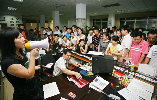 2008年8月8日早晨,湖南省常德市武陵區(qū)政務中心婚姻登記處,上百對前來辦理婚姻登記的市民排起長龍。潘敬林/攝