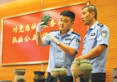 2011年4月,寶雞市公安局和文物局成立寶雞市打擊文物違法犯罪工作領(lǐng)導(dǎo)小組,近年來連續(xù)開展了“天鷹”“獵鷹”“秦鷹”“雄鷹”“金鷹”“神鷹”的“鷹”之系列打擊文物犯罪專項行動,行動期間共打掉文物犯罪團(tuán)伙103個,破獲文物案件846起,共追繳涉案文物2483件(組)。