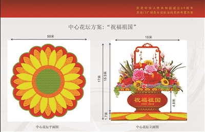 今天凌晨,兩輛130噸吊車駛入天安門廣場,把花盤緩緩吊裝到籃體上,中心花壇的“真容”終于顯現(xiàn)出來。