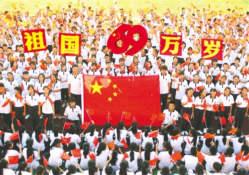 金風(fēng)送爽,五星紅旗迎風(fēng)招展;鮮花怒放,祖國(guó)大地一派喜慶。全國(guó)各地干部群眾載歌載舞,共同慶祝新中國(guó)成立69周年。