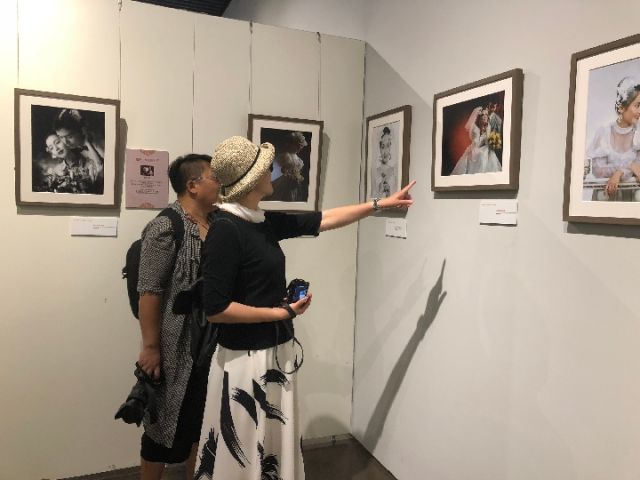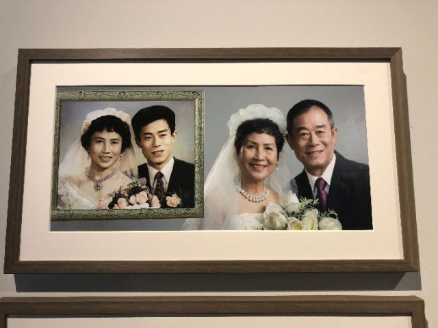 展廳內(nèi)的一幅新舊婚照對(duì)比圖引起了觀眾們的注意,作品中左邊的照片是一對(duì)新人于1980年拍攝的婚照,右邊是這對(duì)夫婦于今年以同樣角度、同款風(fēng)格拍攝的一張婚照。對(duì)比之下,雖然曾經(jīng)的“新人”容顏漸老,但幸福依舊。