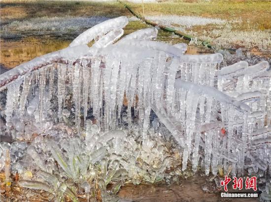 10月10日,甘肅肅南縣經(jīng)歷一場降雨降溫天氣,出現(xiàn)大面積冰掛景觀。樹木花草被“冰封”,在陽光下宛如玉樹瓊花,將肅南縣妝點得如詩如畫。索國民 攝