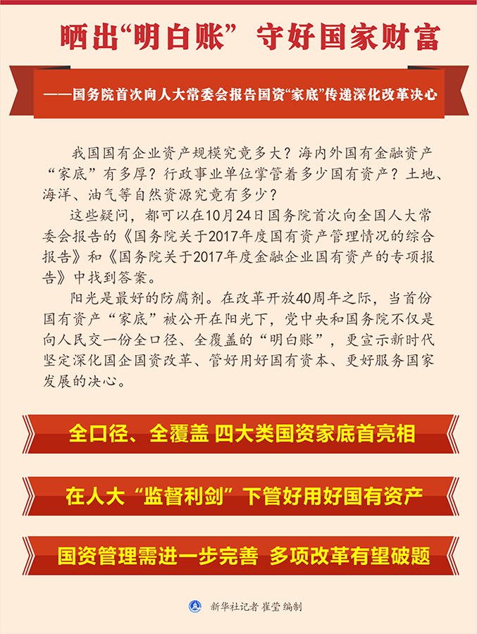 圖表:曬出“明白賬” 守好國家財(cái)富——國務(wù)院首次向人大常委會(huì)報(bào)告國資“家底”傳遞深化改革決心 新華社記者 崔瑩 編制