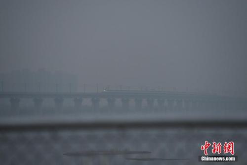 12月1日0時,北京市再啟動空氣重污染黃色預(yù)警,圖為一列高鐵在霧霾中經(jīng)過北京房山。 中新社記者 崔楠 攝