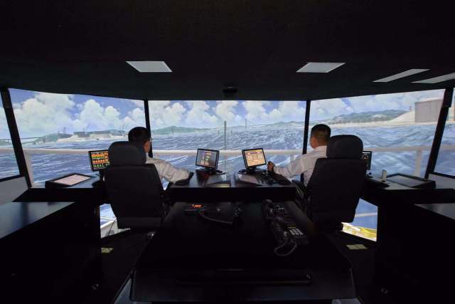 工作人員在執(zhí)行海上船舶航行模擬