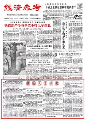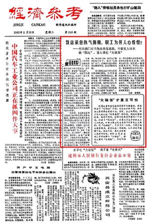 80年代初,改革的東風(fēng)讓經(jīng)濟(jì)建設(shè)的熱潮,一浪高過(guò)一浪,新華社想辦一份綜合性經(jīng)濟(jì)報(bào)紙,時(shí)任新華社國(guó)內(nèi)部副主任的李峰建議,報(bào)紙采用“經(jīng)濟(jì)參考”作為報(bào)名,第一可以有些“神秘”色彩,第二說(shuō)話可以放開一些。新華社黨組采納了他的意見。
