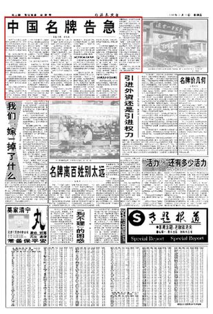 《經(jīng)濟(jì)參考報(bào)》記者走訪發(fā)現(xiàn),中國(guó)名牌告急,由多方面原因造成:“洋”牌子淹了國(guó)產(chǎn)貨,假“名牌”砸了真名牌。