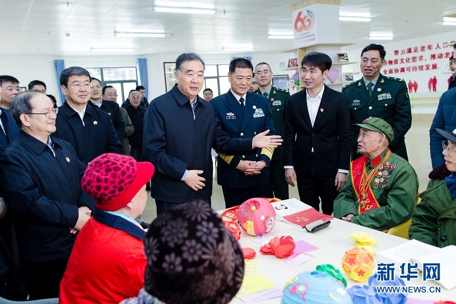 12月13日,帶著以習(xí)近平同志為核心的黨中央的親切關(guān)懷和全國(guó)各族人民的美好祝福,中共中央政治局常委、全國(guó)政協(xié)主席、中央代表團(tuán)團(tuán)長(zhǎng)汪洋率中央代表團(tuán)一分團(tuán),在北海市看望慰問各族各界干部群眾,和大家共同慶祝廣西壯族自治區(qū)成立60周年。這是汪洋來(lái)到北海市社會(huì)福利院,看望慰問在這里的老人。 新華社記者 劉彬 攝