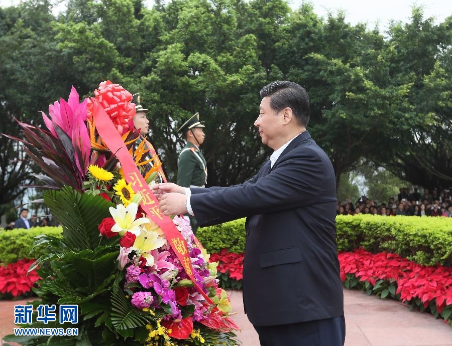 2012年12月,習(xí)近平在深圳蓮花山公園向鄧小平銅像敬獻(xiàn)花籃。 新華社記者蘭紅光攝