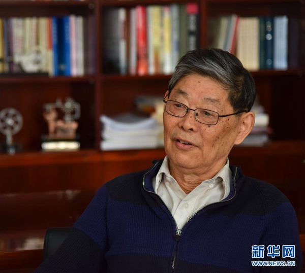 王啟民在大慶油田的辦公室內(nèi)接受新華社記者采訪(12月11日攝)。?新華社記者 何山 攝