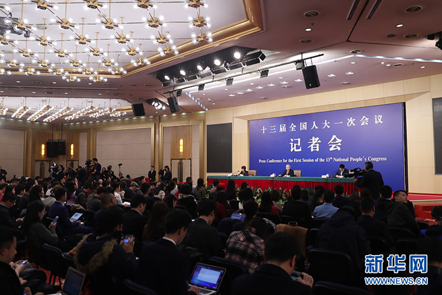 十三屆全國(guó)人大一次會(huì)議新聞中心于3月7日在梅地亞中心多功能廳舉行記者會(huì),邀請(qǐng)國(guó)務(wù)院扶貧辦主任劉永富就“打好精準(zhǔn)脫貧攻堅(jiān)戰(zhàn)”的相關(guān)問(wèn)題回答中外記者的提問(wèn)。圖為記者會(huì)現(xiàn)場(chǎng)。新華網(wǎng)/中國(guó)政府網(wǎng) 陳杰 攝