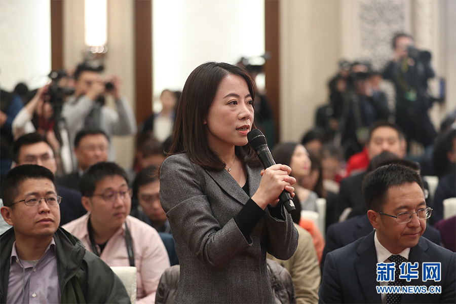 全國政協(xié)十三屆一次會議3月8日15:00在人民大會堂新聞發(fā)布廳舉行第二場記者會,邀請中央財經(jīng)領(lǐng)導(dǎo)小組辦公室副主任楊偉民,中國進出口銀行董事長、黨委書記胡曉煉,農(nóng)業(yè)部原副部長陳曉華,全國工商聯(lián)副主席、清華大學(xué)經(jīng)濟管理學(xué)院院長錢穎一,中國中化集團有限公司黨組書記、董事長寧高寧就推動經(jīng)濟高質(zhì)量發(fā)展回答記者提問。圖為第一財經(jīng)記者提問。新華網(wǎng)/中國政府網(wǎng) 翟子赫 攝