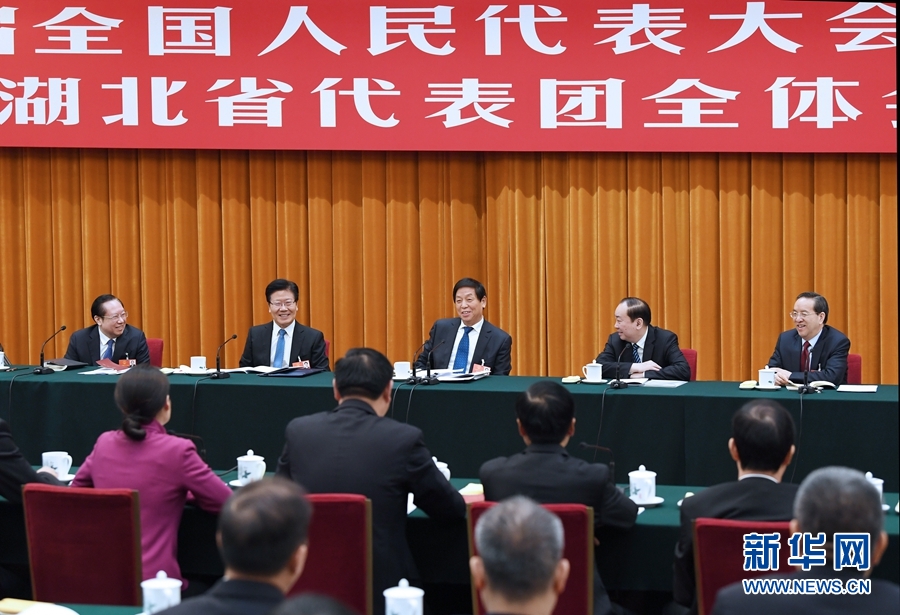 3月9日,中共中央政治局常委栗戰(zhàn)書參加十三屆全國人大一次會(huì)議湖北代表團(tuán)的審議。 新華社記者 饒愛民 攝