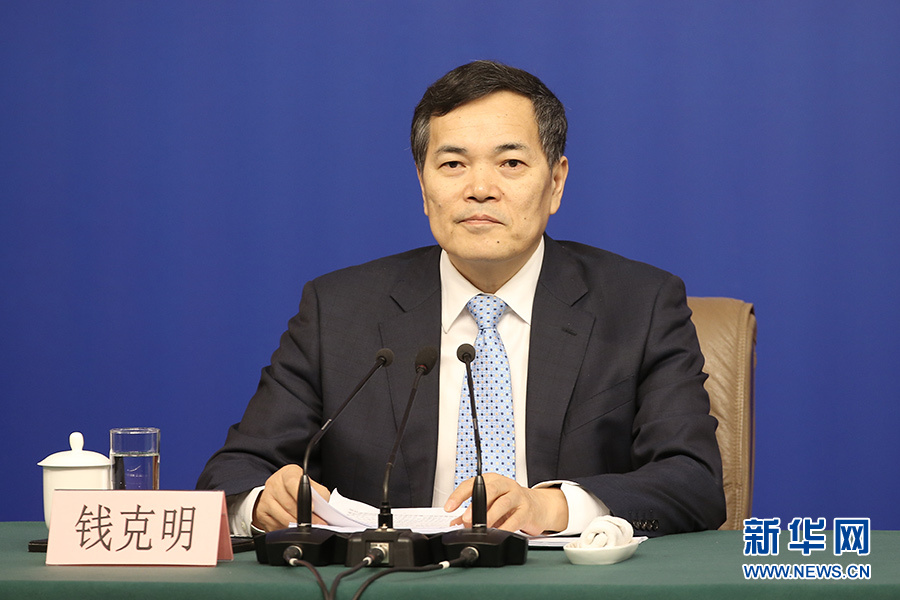 十三屆全國人大一次會議新聞中心3月11日10時在梅地亞中心多功能廳舉行記者會,邀請商務(wù)部部長鐘山、副部長兼國際貿(mào)易談判副代表王受文、副部長錢克明就“推動形成全面開放新格局 推動商務(wù)事業(yè)高質(zhì)量發(fā)展”相關(guān)問題回答中外記者提問。圖為商務(wù)部副部長錢克明。新華網(wǎng)/中國政府網(wǎng) 陳杰 攝