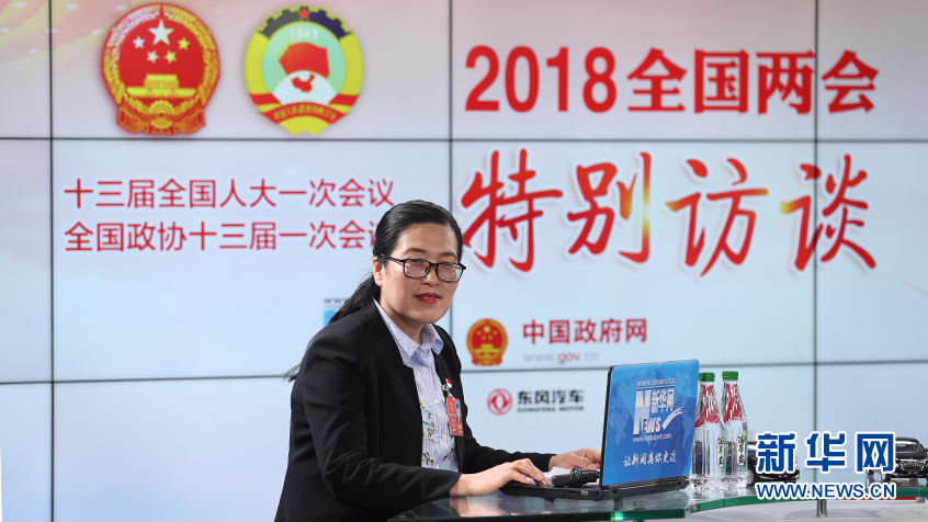 全國人大代表、中國工商銀行陜西省銅川市長虹路支行主任柜員郭曉燕做客新華網(wǎng)2018全國兩會(huì)特別訪談 新華網(wǎng) 郭小天攝