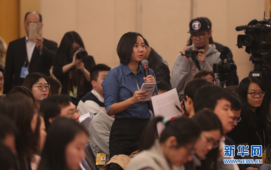 十三屆全國人大一次會議新聞中心于3月17日15時在梅地亞中心多功能廳舉行記者會,邀請環(huán)保部部長李干杰就“打好污染防治攻堅戰(zhàn)”相關問題回答中外記者提問。圖為中國日報社記者提問。新華網/中國政府網 曲植 攝?