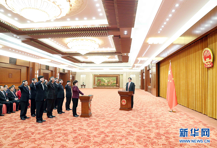 剛剛閉幕的十三屆全國(guó)人大常委會(huì)第一次會(huì)議任命了全國(guó)人大常委會(huì)副秘書(shū)長(zhǎng)、預(yù)算工作委員會(huì)主任、第四任香港特別行政區(qū)基本法委員會(huì)主任和第四任澳門特別行政區(qū)基本法委員會(huì)主任。根據(jù)全國(guó)人大常委會(huì)關(guān)于實(shí)行憲法宣誓制度的決定,上述人員依法進(jìn)行憲法宣誓。