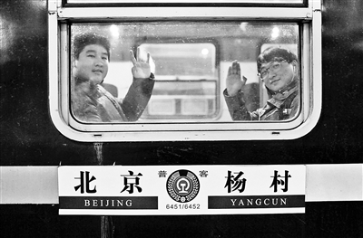 相比平時(shí)的車廂,最后一趟6451次多了不少車迷走來走去,有人忙著補(bǔ)票,有人忙著拍照。列車走行37分鐘到達(dá)黃村車站,北青報(bào)記者隨著二三十名乘客下車。列車???分鐘,又有百余名乘客陸續(xù)上車,將5節(jié)車廂幾乎坐滿。一聲清脆的鳴笛后,6451次緩緩消失在了夜幕中。今天上午,6452次將從楊村開回北京站,這對老綠皮車將宣告停運(yùn)。