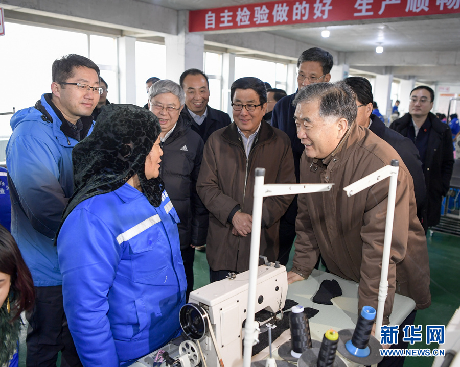 近日,中共中央政治局常委、全國政協(xié)主席汪洋在甘肅臨夏回族自治州調(diào)研脫貧攻堅工作,看望慰問貧困群眾和基層扶貧干部。這是1月14日,汪洋在和政縣考察扶貧車間,調(diào)研東西部扶貧協(xié)作情況。 新華社記者 李學仁 攝