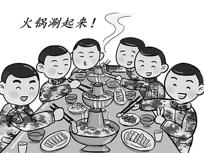 年夜飯,是中國(guó)人春節(jié)最溫暖的儀式。在軍營(yíng),如果除夕晚上能與戰(zhàn)友們圍坐一起,涮頓熱氣騰騰的火鍋,也有著特別的味道。那火辣辣的滋味,吃在嘴里,暖在心上,洋溢著滿滿的戰(zhàn)友情深。(姜 晨/繪 朱夢(mèng)圓/文)