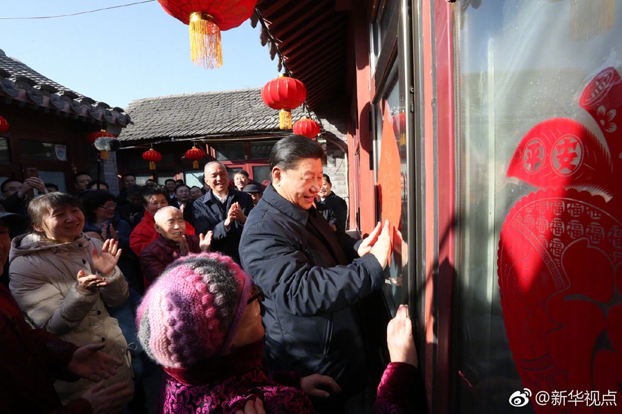 2月1日上午,習(xí)近平來(lái)到北京前門(mén)東區(qū),沿草廠(chǎng)四條胡同步行察看街巷風(fēng)貌,走進(jìn)居民家中看望慰問(wèn),了解居民生活情況,與群眾一起包餃子、拉家常,并向大家致以新春祝福。(記者張曉松、謝環(huán)馳、鞠鵬) ????