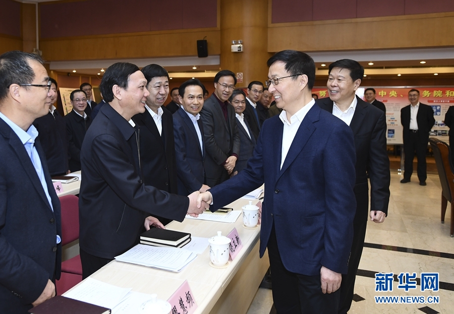 2月18日,中共中央政治局常委、國務院副總理韓正到國家稅務總局調研并主持召開座談會。 新華社記者謝環(huán)馳攝