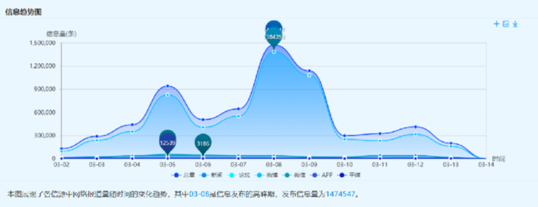 新華睿思大數(shù)據(jù)通過(guò)監(jiān)測(cè)新聞網(wǎng)站、論壇、微信、微博、APP、平媒6個(gè)信源,分析結(jié)果顯示,截至目前,全國(guó)兩會(huì)開幕以來(lái),關(guān)于健康中國(guó)的話題共6788791個(gè)。