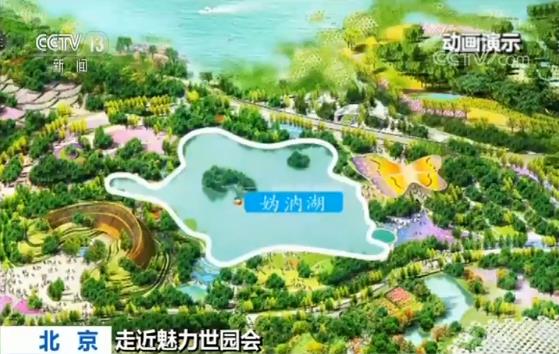 央視記者羅子瑛說(shuō),幾年前媯水河的南岸還是一片田野,2014年5月當(dāng)園區(qū)的規(guī)劃者走到媯水河的拐彎處,這個(gè)位置,往北他們看到了媯水河最為寬闊的水面,而水面之上就是著名的冠帽山,往西北方向看則是小海坨山,山川形勝,圖畫天然。從這個(gè)被規(guī)劃者稱為“自然感動(dòng)點(diǎn)”的位置出發(fā),引山水入園,沿著兩條延長(zhǎng)線進(jìn)行規(guī)劃,形成了現(xiàn)在園區(qū)的兩條軸線,山水園藝軸和世界園藝軸。