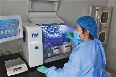 南京醫(yī)科大學第二附屬醫(yī)院醫(yī)生正在使用智能化提取設備提取糞菌。受訪者供圖