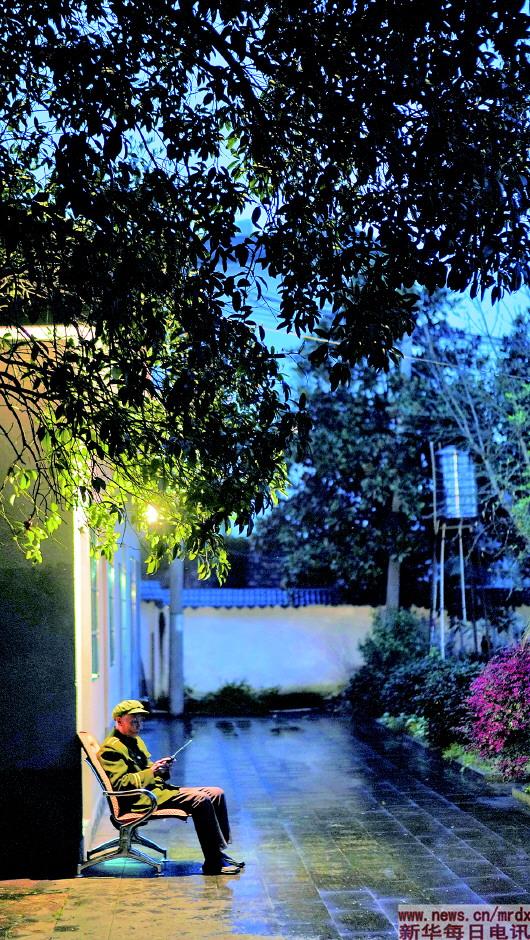 3月27日傍晚,程樟柱在紀(jì)念館內(nèi)聽收音機(jī)。