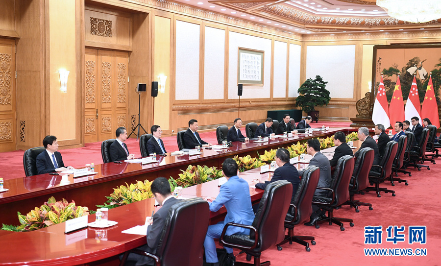 習近平指出,今年是中華人民共和國成立70周年,也是新加坡開埠200年,明年兩國將迎來建交30周年,雙邊關系面臨新的發(fā)展契機。雙方要持續(xù)深化政治互信和利益融合,在涉及彼此核心利益和重大關切問題上相互尊重,在共同發(fā)展的道路上相互支持。中新是共建“一帶一路”的天然伙伴。新加坡積極支持和參與共建“一帶一路”,在這一框架內(nèi)的合作起步早、起點高、格局大,為新時期兩國關系發(fā)展提供了新動力,也為沿線國家高質(zhì)量、高水平共建“一帶一路”發(fā)揮了示范作用。雙方要立足中新合作,推動地區(qū)和沿線國家共同發(fā)展,推進“陸海新通道”和三方合作。雙方要繼續(xù)堅定支持經(jīng)濟全球化和多邊主義,推動共建“一帶一路”同《東盟互聯(lián)互通總體規(guī)劃2025》對接,促進東亞經(jīng)濟一體化。