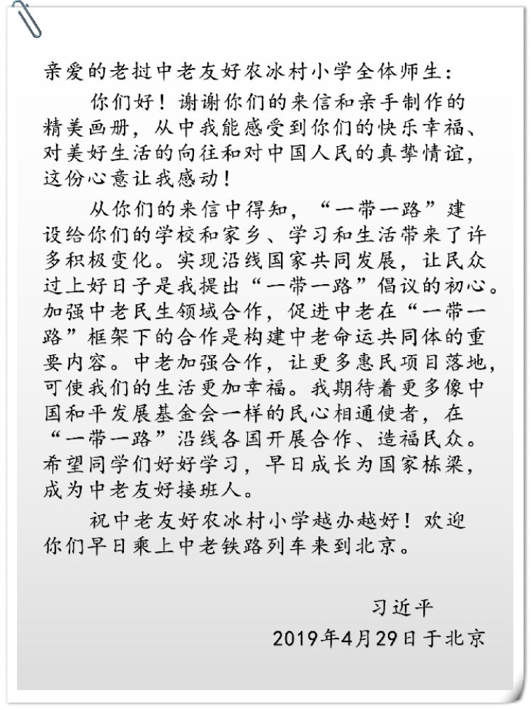 “歡迎你們早日乘上中老鐵路列車來到北京?!绷?xí)近平主席在回信中也專門作出了回應(yīng)。