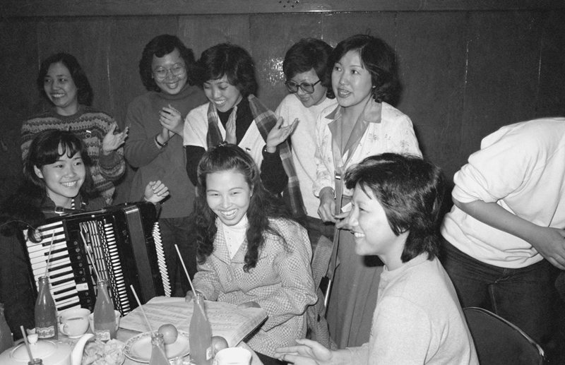 中、新兩國演員聯(lián)歡? 1983年3月19日,新加坡佳音合唱團(tuán)的演員同中國歌劇演員在北京民族文化宮舉行聯(lián)歡。這是兩國演員在一起共唱中國歌曲《年輕的朋友來相會(huì)》。 新華社記者楊慎和攝