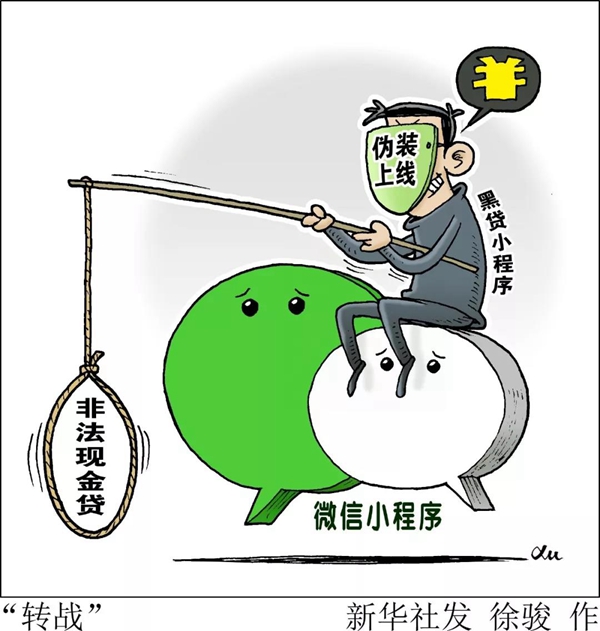——“套路貸”等違規(guī)App的“中轉(zhuǎn)站”。在多個(gè)互聯(lián)網(wǎng)公司的小程序中搜索“貸款”二字,填寫(xiě)相關(guān)職業(yè)、家庭、財(cái)產(chǎn)等信息后,半月談?dòng)浾呤盏搅藸I(yíng)銷(xiāo)人員的微信或QQ號(hào),添加后發(fā)現(xiàn)對(duì)方推薦的貸款工具實(shí)為“套路貸”。同時(shí)一些用戶(hù)反映,有的小程序成涉黃、涉賭的“中轉(zhuǎn)站”,通過(guò)小程序吸引人加入指定聊天群后,接下來(lái)的就是色情交易、賭博活動(dòng)等。
