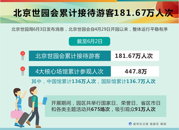 新華社北京6月3日電(記者魏夢佳、丁靜)北京世園局3日發(fā)布消息,北京世園會自4月29日開園以來,整體運行平穩(wěn)有序。截至6月2日,北京世園會累計接待游客181.67萬人次,4大核心場館累計參觀人次達447.8萬。