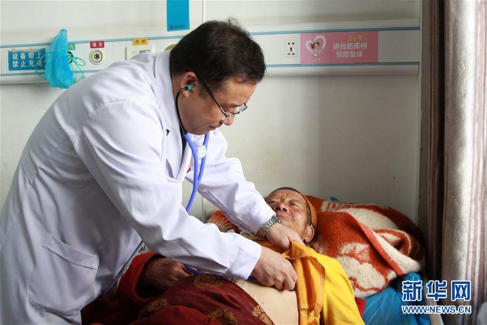 這是來自北京的援青干部劉云軍為患者診療(資料照片)。新華社發(fā)