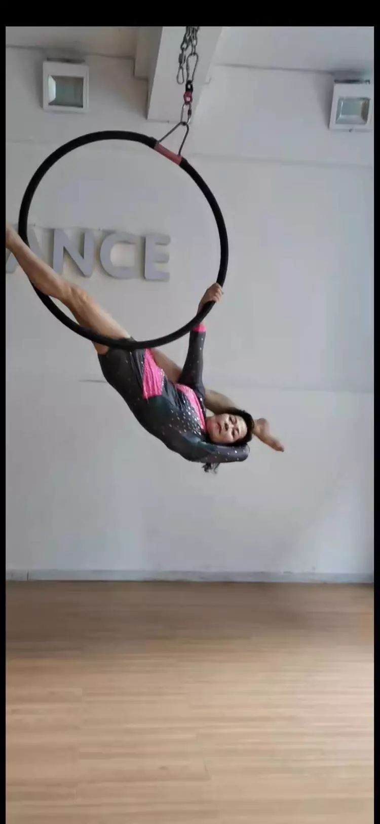 伴隨舒緩悠長的音樂,戴大麗在鋼管上翩翩起舞。她體態(tài)輕盈,渾似漫步太空,用力不露痕跡,地心引力似乎對(duì)她不起作用。