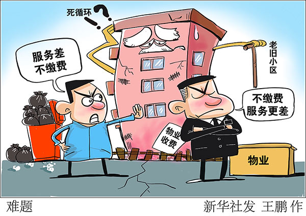 垃圾隨意丟棄、車輛亂停亂放、流動商販隨意出入……當前,有的老舊小區(qū)根本沒有物業(yè)管,有的物業(yè)管得很差。一些居民因物業(yè)“服務(wù)差”不繳費,而物業(yè)也往往以“入不敷出”為由敷衍了事。