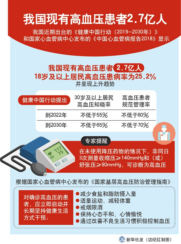 新華社北京10月24日電 題:我國高血壓患者2.7億 該如何穩(wěn)住我們的血壓?