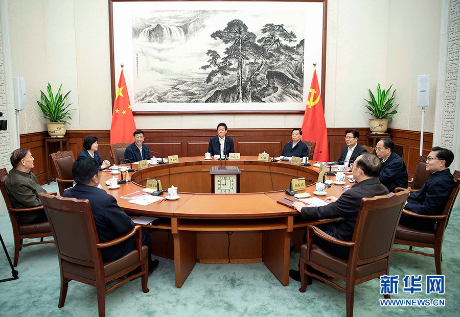 11月1日,中共全國(guó)人大常委會(huì)黨組在北京舉行會(huì)議,傳達(dá)學(xué)習(xí)習(xí)近平總書(shū)記在黨的十九屆四中全會(huì)上的重要講話和全會(huì)精神,統(tǒng)一思想認(rèn)識(shí),研究貫徹落實(shí)工作。中共中央政治局常委、全國(guó)人大常委會(huì)委員長(zhǎng)、黨組書(shū)記栗戰(zhàn)書(shū)主持會(huì)議并講話。 新華社記者 李濤 攝