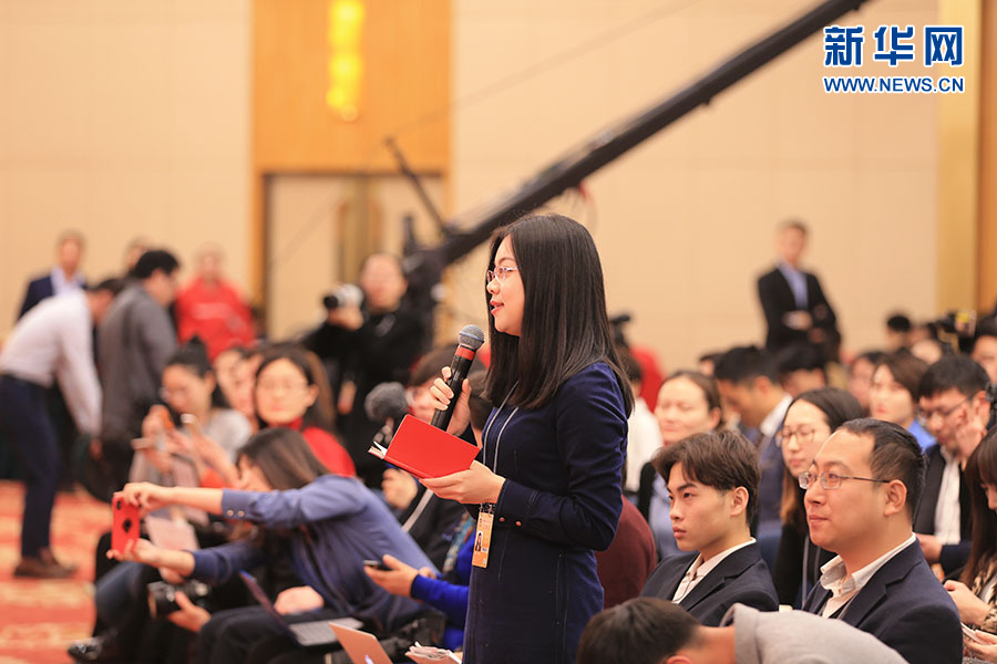 全國(guó)政協(xié)十三屆二次會(huì)議3月5日15:00在梅地亞中心多功能廳舉行記者會(huì),邀請(qǐng)5位全國(guó)政協(xié)委員就“打贏防范化解重大風(fēng)險(xiǎn)、精準(zhǔn)脫貧、污染防治三大攻堅(jiān)戰(zhàn)”回答記者提問。圖為光明日?qǐng)?bào)記者提問。新華網(wǎng)/中國(guó)政府網(wǎng) 陳杰 攝