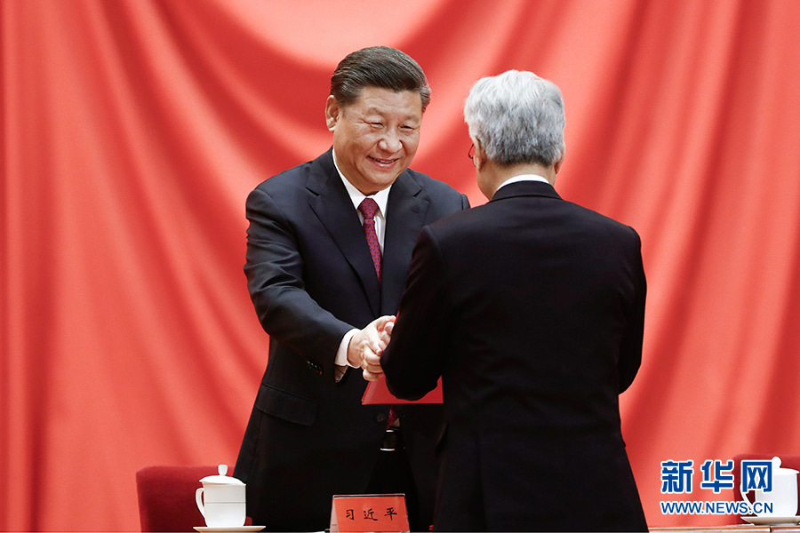上午10時30分,大會在雄壯的國歌聲中開始。在熱烈的掌聲中,中共中央總書記、國家主席、中央軍委主席習(xí)近平首先向獲得2019年度國家最高科學(xué)技術(shù)獎的原中國船舶重工集團公司第七一九研究所黃旭華院士和中國科學(xué)院大氣物理研究所曾慶存院士頒發(fā)獎?wù)?、證書,同他們熱情握手表示祝賀,并請他們到主席臺就座。隨后,習(xí)近平等黨和國家領(lǐng)導(dǎo)人同兩位最高獎獲得者一道,為獲得國家自然科學(xué)獎、國家技術(shù)發(fā)明獎、國家科學(xué)技術(shù)進步獎和中華人民共和國國際科學(xué)技術(shù)合作獎的代表頒發(fā)證書。