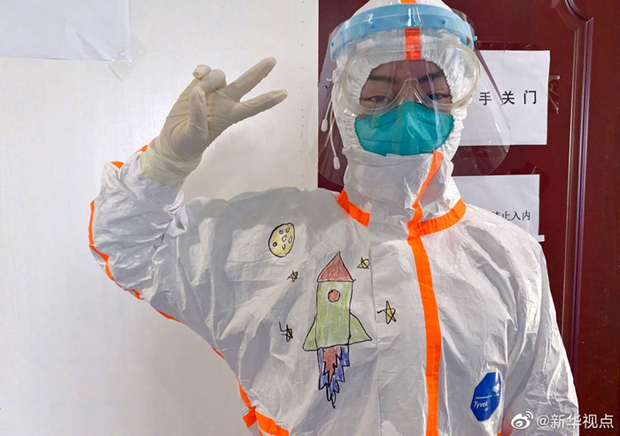 孩子別怕,我們一起在防護(hù)服上畫畫-新華網(wǎng)