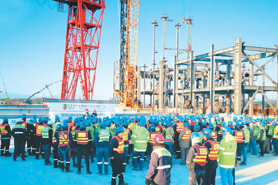 2月10日,胡努特魯燃煤電廠項(xiàng)目舉行防疫期間安全施工會(huì)。國(guó)家電投供圖