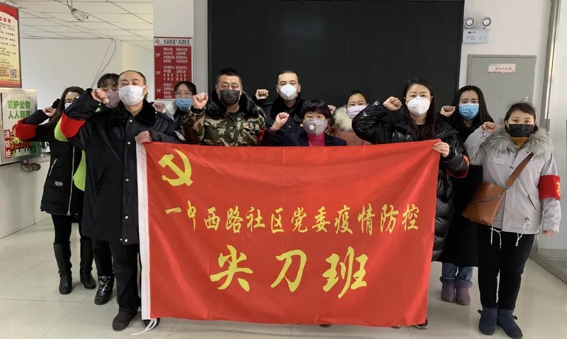 滕逸鶴帶領(lǐng)社區(qū)黨委疫情防控尖刀班宣誓。圖片來(lái)源:今日東河